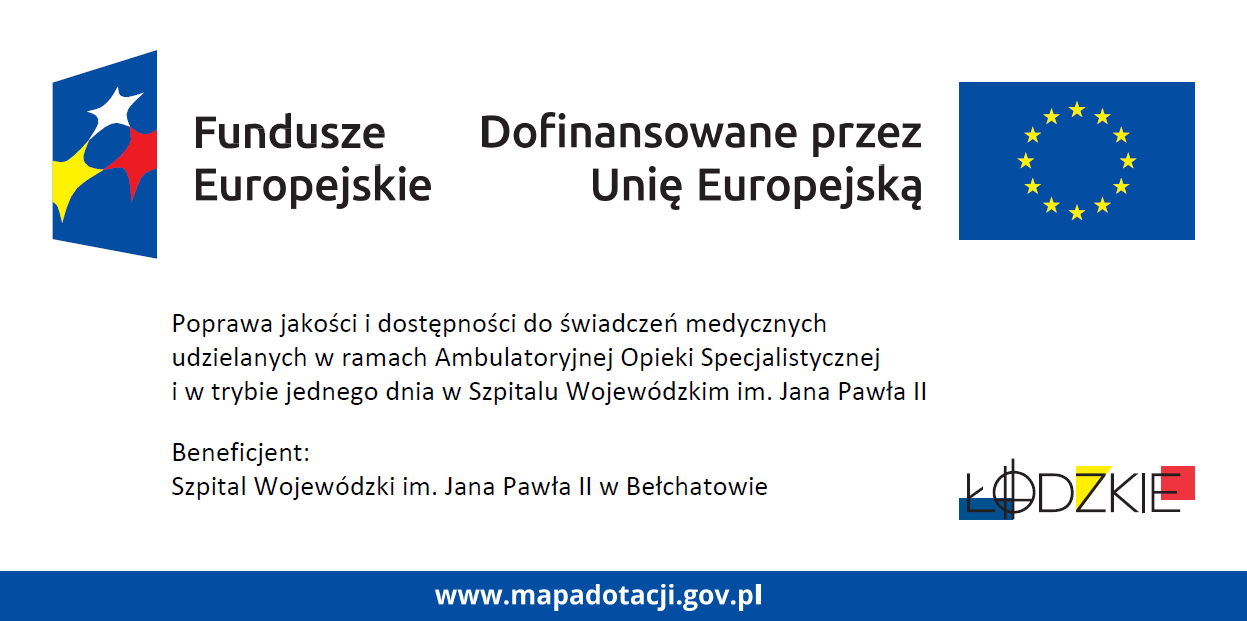 1. Projekt pn. „Poprawa jakości i dostępności do świadczeń medycznych udzielanych w ramach Ambulatoryjnej Opieki Specjalistycznej i w trybie jednego dnia w Szpitalu Wojewódzkim im. Jana Pawła II” współfinansowany ze środków Europejskiego Funduszu Rozwoju Regionalnego w ramach programu regionalnego Fundusze Europejskie dla Łódzkiego 2021-2027