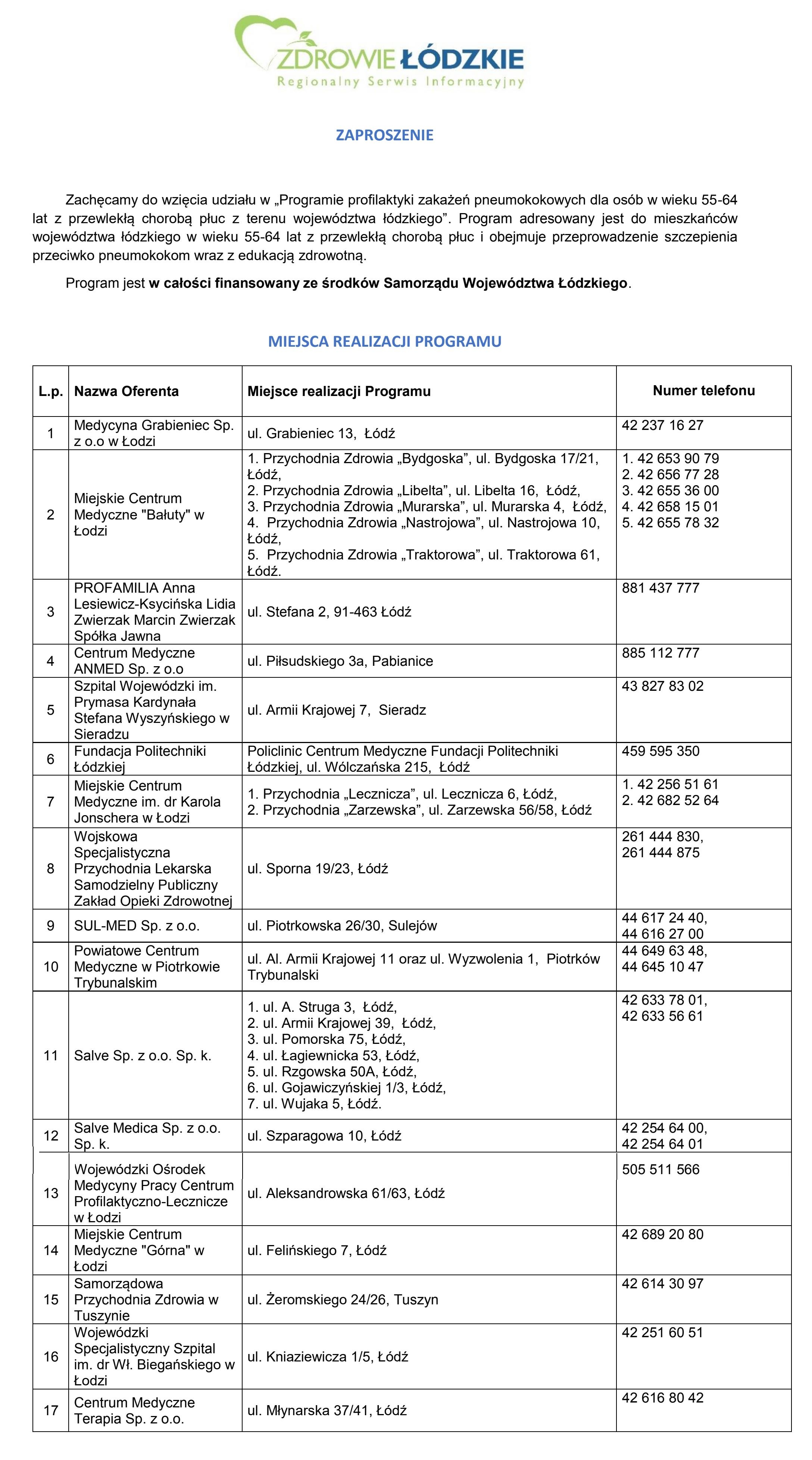 Program profilaktyki zakażeń pneumokokowych finansowany ze środków Samorządu Województwa Łódzkiego.
