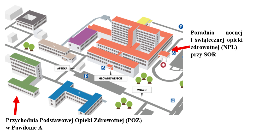 - 09.02.2026r. Przychodnia Podstawowej Opieki Zdrowotnej (POZ) będzie świadczyła usługi zdrowotne w Pawilonie A (wejście przed Pracownią Mikrobiologii, dawna lokalizacja Poradni onkologicznej i Poradni chirurgii onkologicznej).